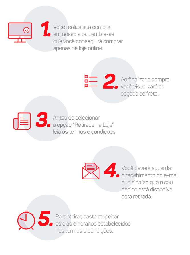 É importante ressaltar que o pedido estará liberado somente após o envio do e-mail: “Seu pedido está pronto para ser retirado!”.